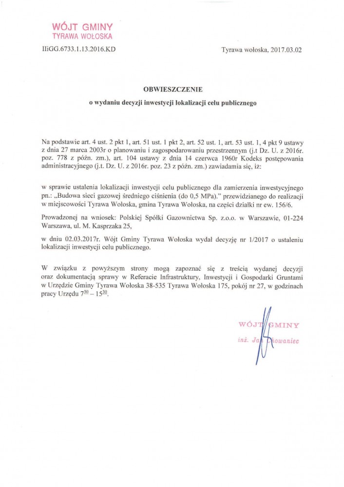Gmina Tyrawa WołoskaTyrawa Wołoska 175, 38-535 Tyrawa Wołoska tel. (013) 465 69 31 email: urzad@tyrawa.pl