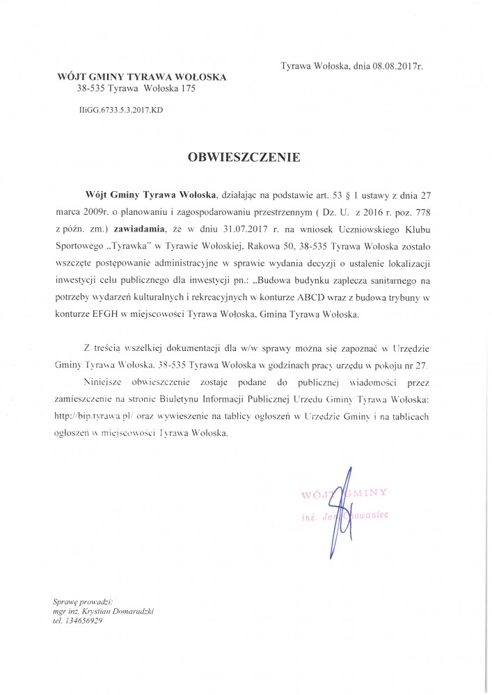 Gmina Tyrawa WołoskaTyrawa Wołoska 175, 38-535 Tyrawa Wołoska tel. (013) 465 69 31 email: urzad@tyrawa.pl