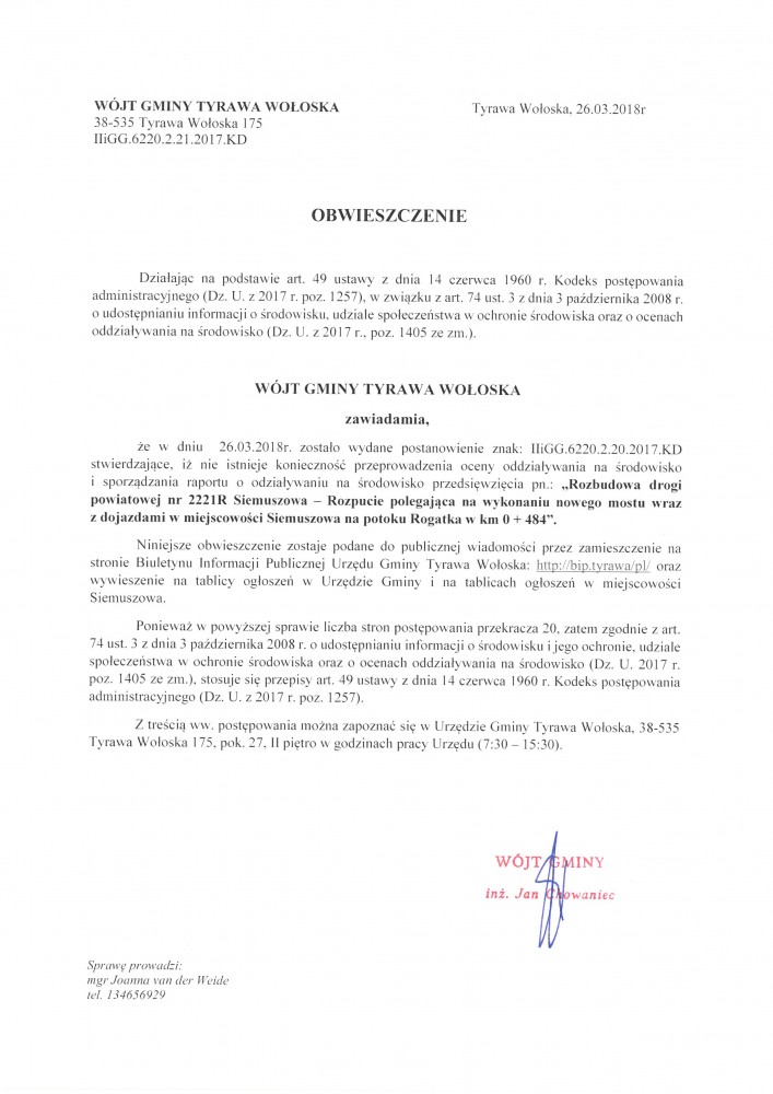 Gmina Tyrawa WołoskaTyrawa Wołoska 175, 38-535 Tyrawa Wołoska tel. (013) 465 69 31 email: urzad@tyrawa.pl
