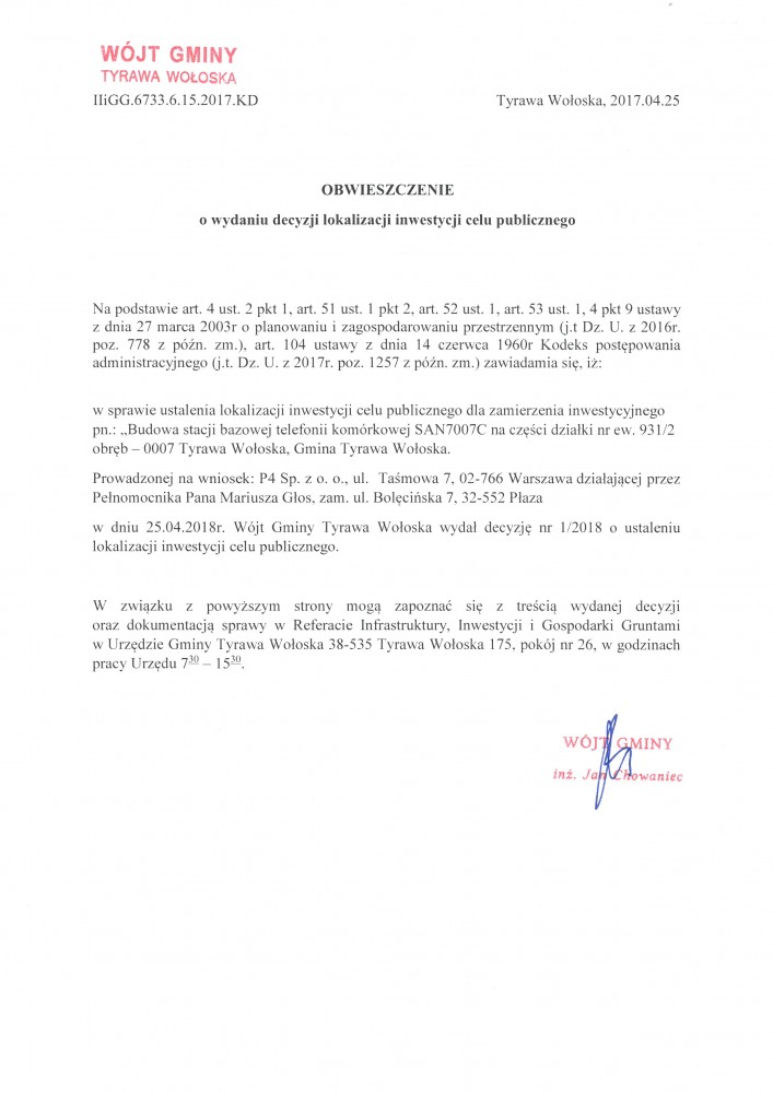 Gmina Tyrawa WołoskaTyrawa Wołoska 175, 38-535 Tyrawa Wołoska tel. (013) 465 69 31 email: urzad@tyrawa.pl