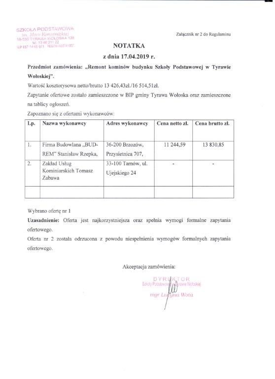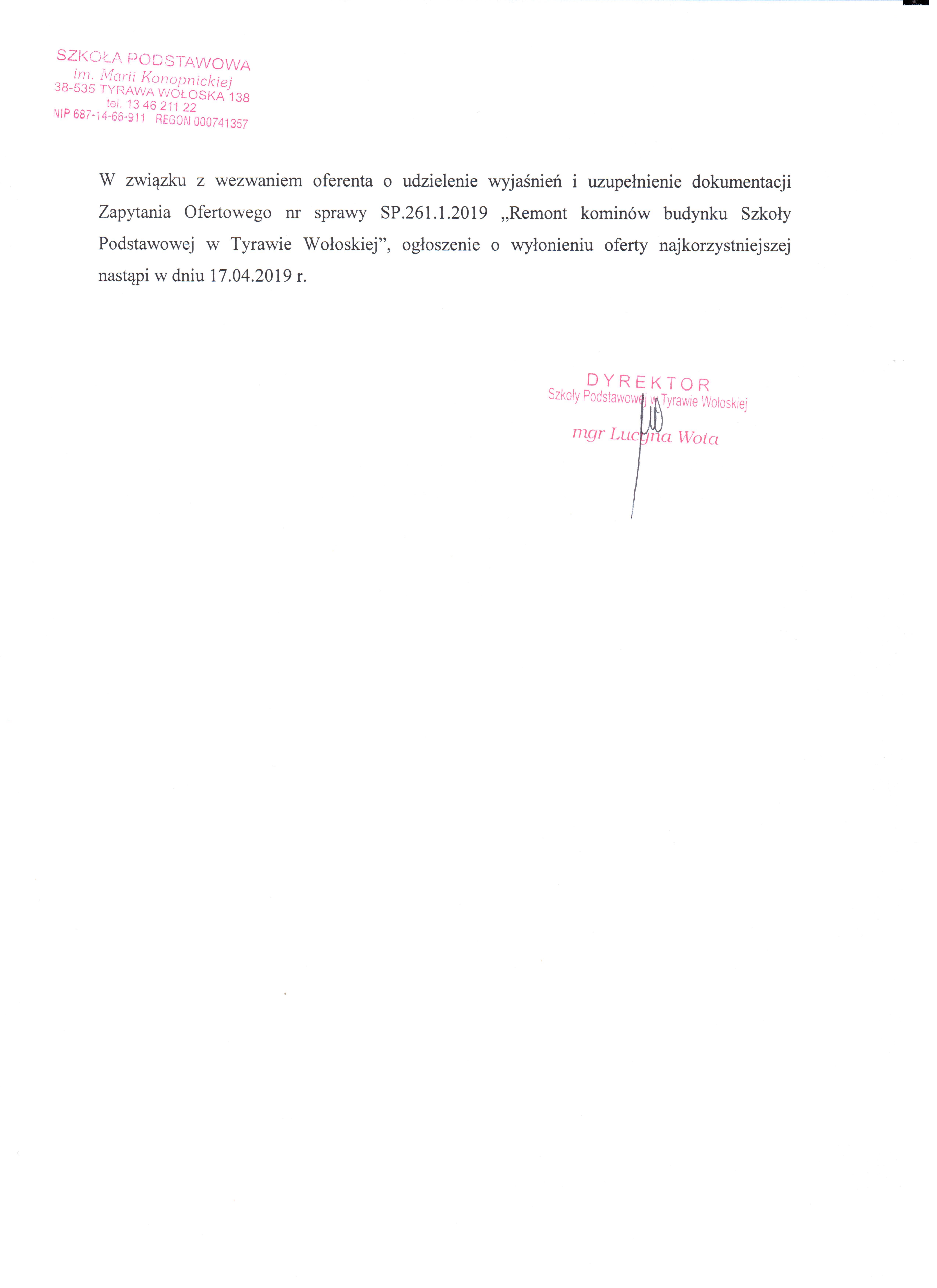 Z uwagi, że wartość zamówienia nie przekracza 30 000 euro w niniejszym zapytaniu nie będą stosowane przepisy ustawy z dnia 29 stycznia 2004 r. Prawo zamówień publicznych (t.j. Dz. U. z 2018 r. poz. 1986, 2215, z 2019 r. poz. 53, 730. ze zm.). Postępowanie jest prowadzone w trybie zapytania ofertowego zgodnie z art. 4 pkt 8 tejże ustawy oraz „Regulaminem udzielania zamówień publicznych, których wartość szacunkowa nie przekracza wyrażonej w złotych równowartości kwoty 30.000,00 euro netto” wprowadzonym Zarządzeniem nr 67/2016 Wójta Gminy Tyrawa Wołoska w dniu 12 października 2016 r.