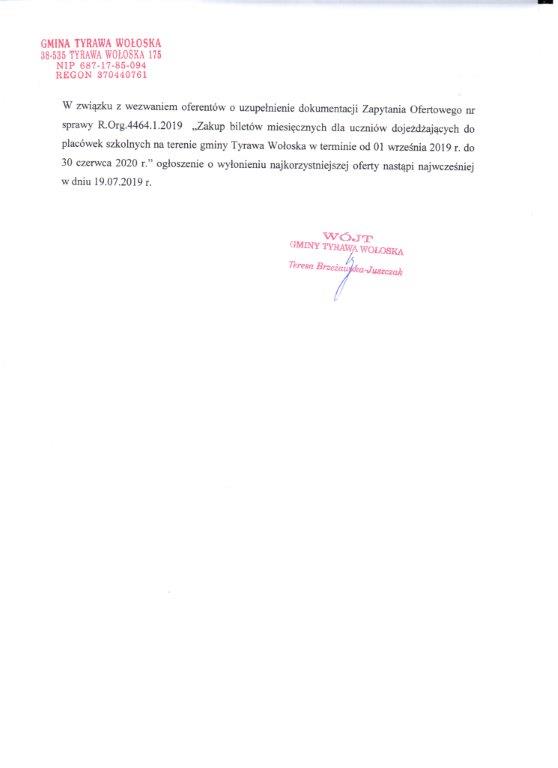 Wójt Gminy Tyrawa Wołoska zaprasza do składania ofert na usługę; „Zakup biletów miesięcznych dla uczniów dojeżdżających do placówek szkolnych na terenie gminy Tyrawa Wołoska w terminie od 01 września 2019 r. do 30 czerwca 2020 r.”